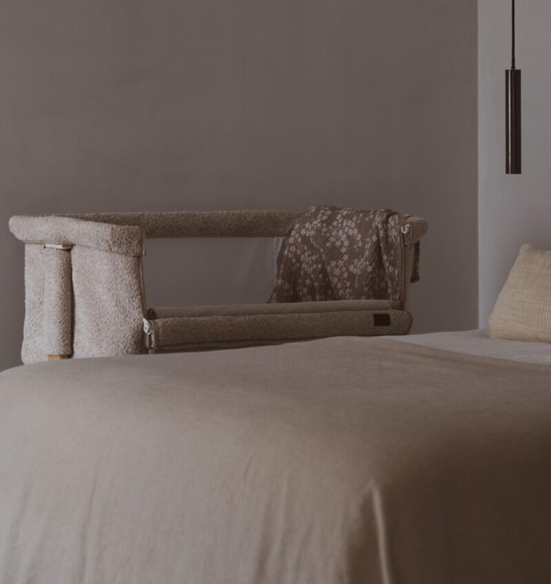 Discover the Side by Side co-sleeper, an indispensable companion during the first months with your baby. This crib is designed to be placed next to your bed, with one side open for easy feeding and comforting. Your little one sleeps safely and comfortably, close to you but in their own