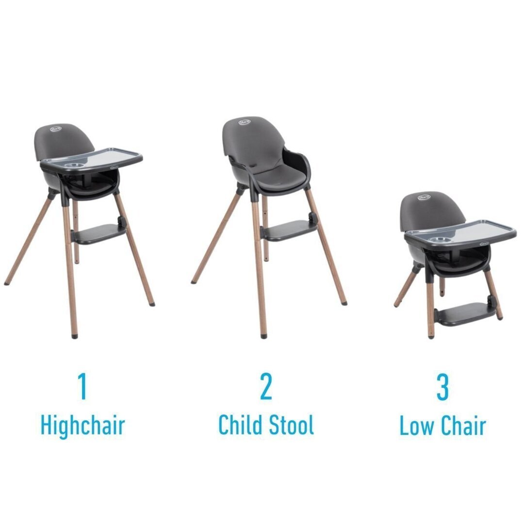 3-in-1 Highchair Suitable from 6 months to approx. 6 years (max. 27.3kg) Highchair and low chair from 6 months to approx. 3 years (15kg) Child stool from 3 years to approx. 6 years (27.3kg) From mealtime to playtime, to always-together time. Meet Presti—the 3-in-1 highchair that effortlessly grows with your